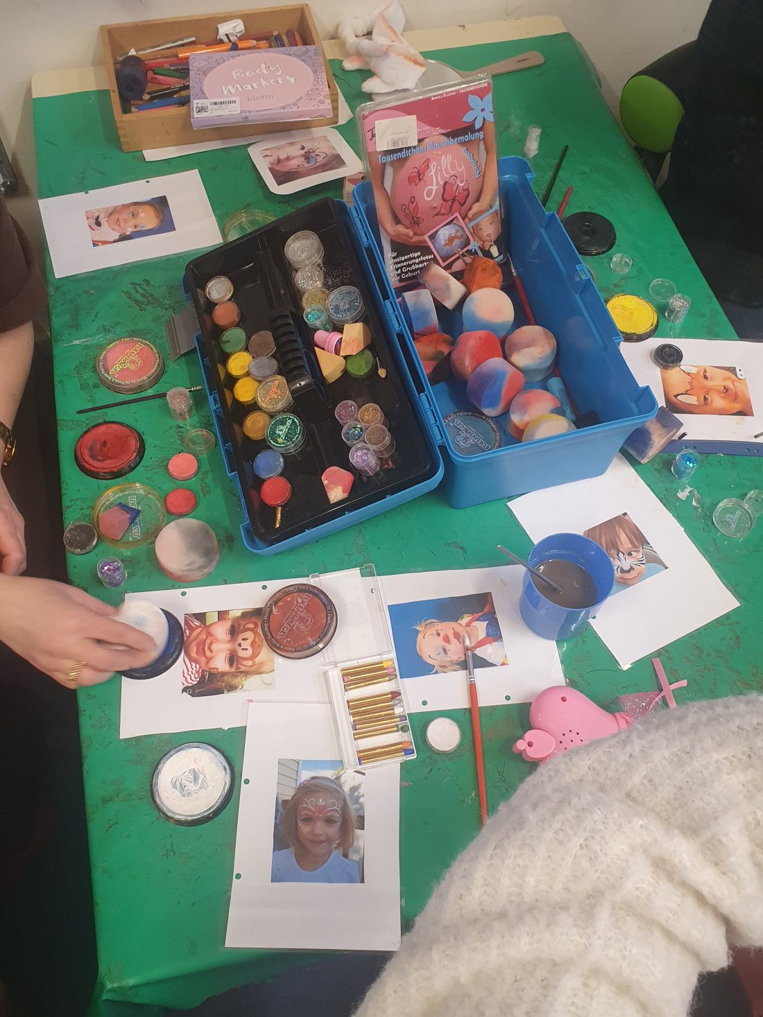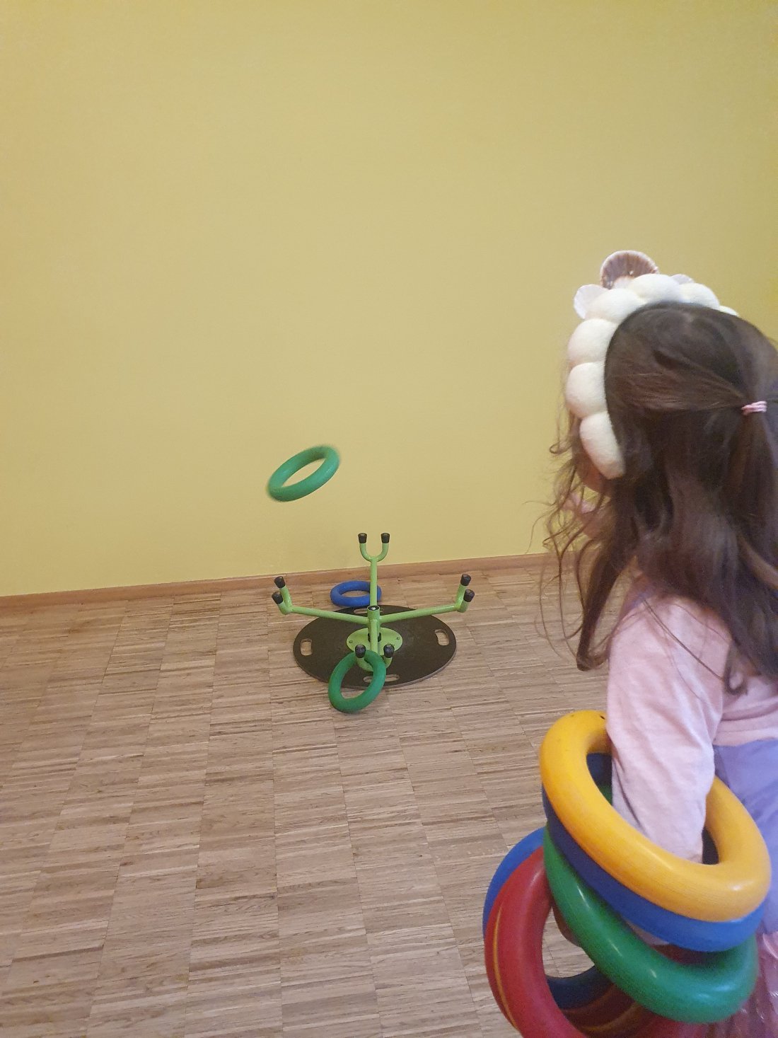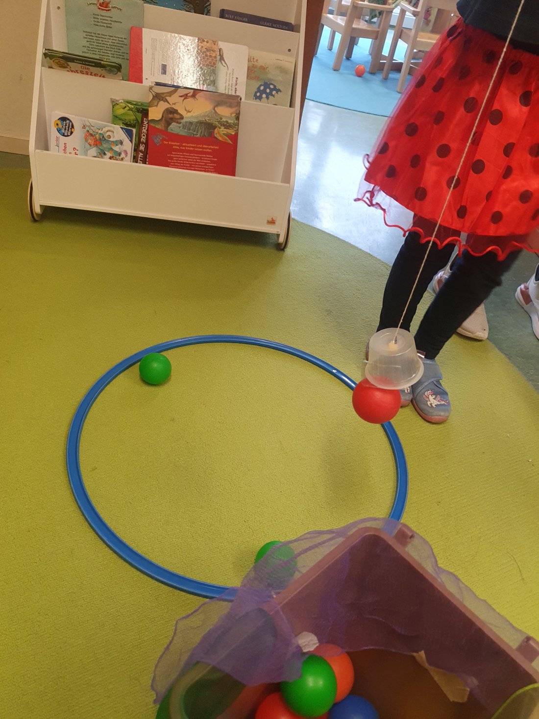 In der Mäusegruppe gab es Kinderschminken. In der Bewegungsbaustelle konnten die Kinder Dosen, Ringe und Sandsäckchen werfen. In der Bärengruppe wurden bunte Zauberstäbe gebastelt, und in der Igelgruppe wurde mit einer selbstgemachten Angel „gefischt“. Außerdem konnten die Kinder Bälle in eine selbstgebastelte „Falle“ werfen – blieb der Ball am mit Klebeband bespannten Ring kleben, galt er als gefangen.