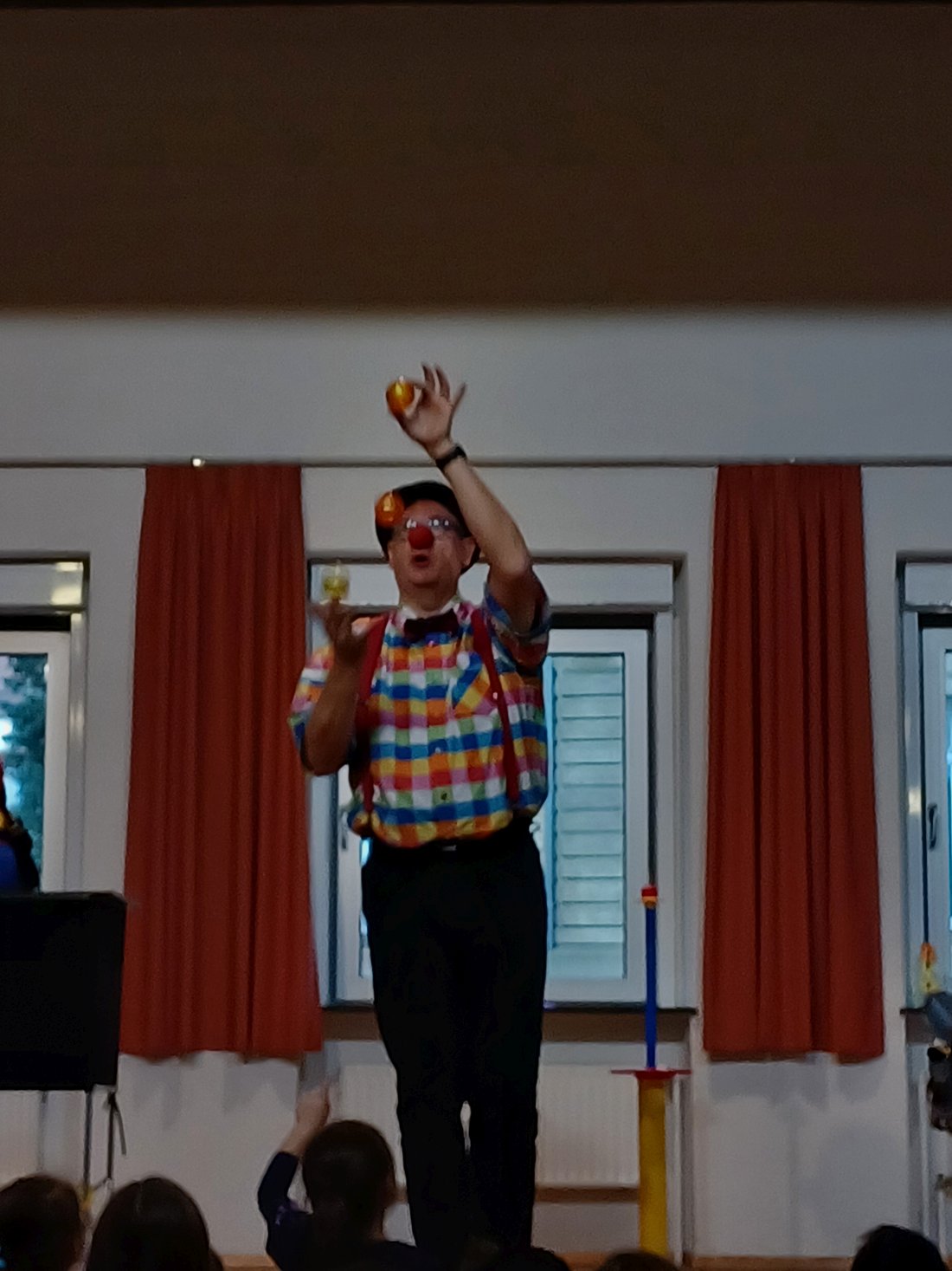 Am Freitag den 27. September besuchte uns ein „Ballonkünstler“ im Kinderhaus. Um 9:15 Uhr startete er im Gemeindehaus mit einer kleinen Aufführung, er jonglierte, zeigte kleine „Zaubertricks“ und formte natürlich Ballontiere. Außerdem durften wir einen echten „Schwertkampf“ miterleben.
