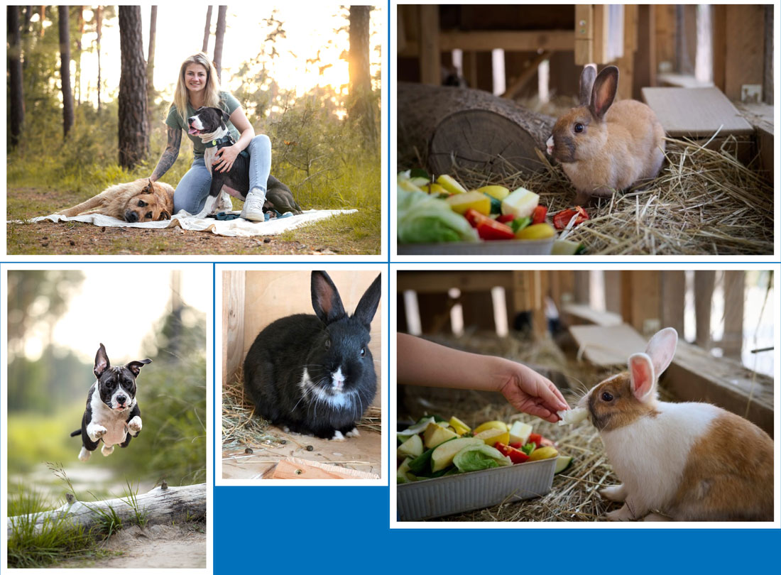Neben der Pflanzenwelt spielen Tiere für Kinder eine große Rolle, denn nicht nur Insekten und Vögel können bei uns beobachtet und erforscht werden. Unsere Kaninchen und vor allem die Kindergartenhunde „Mason“ und „Babsi“ wecken das Interesse Aller. Insbesondere bei der Sprachförderung (ISF+) sind beide wertvolle Mitarbeiter.
